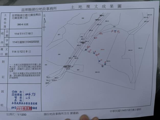 北獅里興段北獅里興小段390-6地號鑑界成果圖1141208